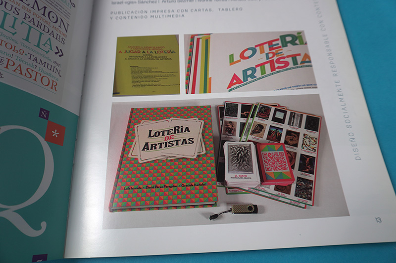 Bienal Nacional de Diseño2017 Mención en la 9a Bienal Nacional de Diseño 2014, con el proyecto Lotería de Artista. Del cual hice dirección de arte y diseño del libro.